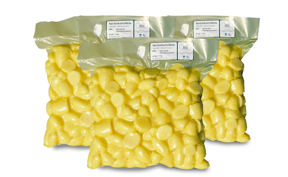 Speisekartoffeln geviertelt geschält und vakuumiert, mehlig kochend
