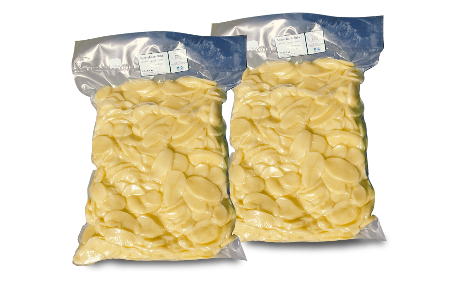 Speisekartoffeln in Scheiben 2mm oder 4mm, geschält und vakuumiert