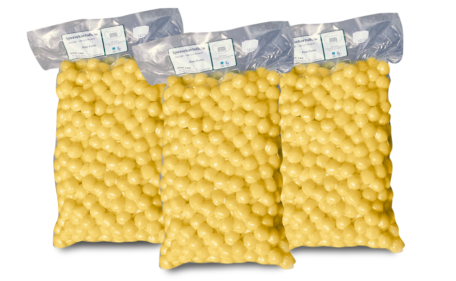 Speisekartoffeln kugelförmig, geschält und vakuumiert